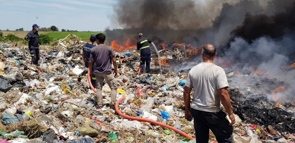 Desde la pasada jornada, personal de Bomberos y de la Intendencia Departamental de Rivera continúa trabajando en el vertedero municipal para extinguir un incendio que se inició en el predio donde se deposita la basura recolectada diariamente en la ciudad.