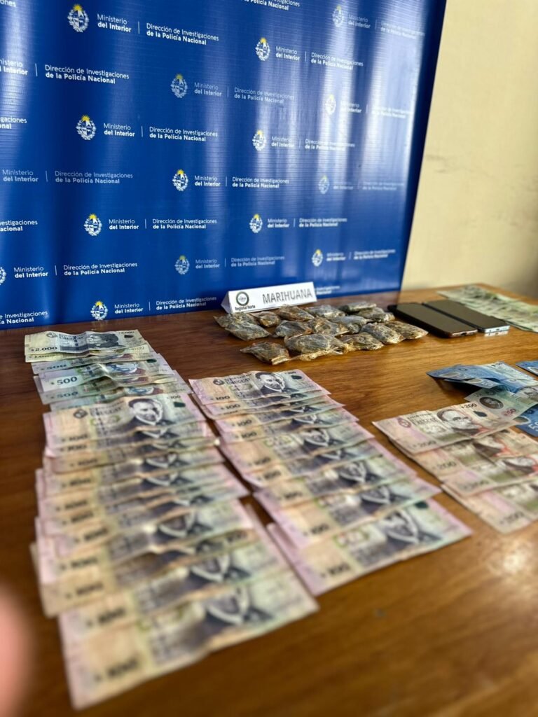 El procedimiento se realizó en la intersección de Sarandí y Faustino Carámbula, luego de que la Policía recibiera información confidencial que alertaba sobre el envío de una encomienda con droga. A partir de esos datos, los investigadores desplegaron tareas de vigilancia e inteligencia en la zona.